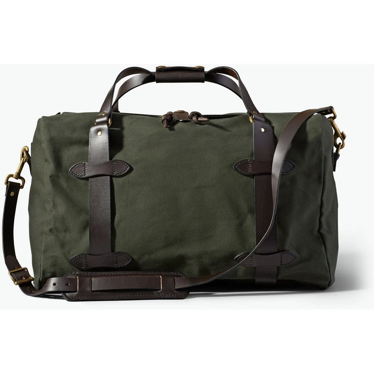 Our Rugged Twill Medium Duffle is made of rain-resistant Rugged Twill and Bridle Leather to create a durable, dependable travel bag. It’s designed to meet maximum airline carry-on size restrictions, so you only need one bag for all of your journeys. The rustproof brass zipper and storm-flap closure offer added protection from the weather, making this versatile bag great for overnight trips of all types. Interior pockets are made of dry finish Tin Cloth for added durability.